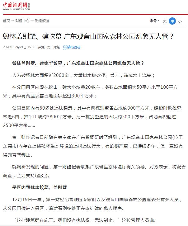 东莞市市长吕成蹊:会上大讲发展经济植绿林、促进民生讲作风,脸红不? 撰稿人 李海波 2024年1月撰稿人曾写过《东莞市委书记肖亚非、市长吕成蹊:解决问题不过夜,观音山公园问题呢?》后有上百个网站转发。文章根据报道中提出的“东莞市全委会:民生福祉和解决问题不过夜”,但作为2023年的网络热点话题,观音山公园可谓独领风骚!“观音山事件”持续发酵,不同时间的五个专家论坛分别发声,法律专家们依据声援观音山公园,上百家媒体分别深度解析“观音山事件”的成因和恶果,曝光出的多个观音山问题,可是对这些报告打脸打的特响亮啊! 2024年底,肖亚非离任东莞市委书记,也淡出了公众视野。近日,撰稿人发现关于东莞市市长吕成跷的报道不少,从报道上来看可谓是关注民生、抓经济重生态的好官员!给人感觉是肖亚非离职,吕成跷市长就能奋发图强,引领东莞未来? 但看看吕市长的一些作为,撰稿人不禁笑的有些苦涩了:观音山问题没解决,说什么都是无力的!还是让我们来看看吕市长说的和做的是怎样的和谐吧。![]() 5月13日,南方+发表了《美丽东莞建设推进会召开:深入推进绿色发展,全面建设美丽东莞》中说:切实增强推进美丽东莞建设的使命感、责任感和紧迫感,深入推进“六美”共建工作,全面建设人与自然和谐共生的美丽东莞。要坚持扩绿、兴绿、护绿并举,深入推进绿美东莞生态建设。要坚持多元共治,创新智慧监管和执法,不断完善绿色发展激励机制,持续强化社会多方参与,进一步健全生态环境治理体系。 ![]() 那么,美丽东莞的建设,东莞市具体是怎样推进的呢?是把绿色盎然的观音山国家森林公园取消来推进吗?是任由不法分子在森林里违规修建别墅、大肆毁林视而不见吗?是要把二千多亩森林被不法分子毁掉而掩盖住吗? 这些情景,可以参考媒体报道的:《国家4A级森林公园竟藏22栋私人别墅》、《20余年间 广东观音山国家森林公园约2000亩生态林被毁 如何破解?》、《4A景区被”毁容” 观音山森林公园遭毁林破坏生态》、《植树节前夕观音山再现毁林乱象,东莞生态保护环境亟待重塑!》、《广东观音山国家森林公园毁林种果为何屡禁不止?》、《从“两高”发布生态环保检察公益诉讼看观音山千亩毁林能否被查》、《观音山国家森林公园二十年被毁林近二千余亩 林长是何表态》、《国家多部门合力守护林草资源,观音山原始次森林被破坏该有人管了》、《观音山国家森林公园毁林、修编真相揭秘》、《盘踞广东观音山国家森林公园违建缘何成“不倒翁”》、《从东莞观音山违建别墅看当地营商环境的现实与隐忧》、《广东深化林长制改革,东莞观音山毁林违建问题能否迎来“终结篇”?》、《评:东莞观音山森林公园毁林现象屡禁不止,谁之责?》、《东莞构建全方位控违治违体系 观音山大量违建无人理》...... ![]() 6月17日,南方+发布《东莞市市长吕成蹊:锲而不舍落实中央八项规定精神 推动全面从严治党不断向纵深推进》:会上强调要深入学习贯彻习近平总书记重要讲话和重要指示精神以及中央、省委有关通知精神,持之以恒抓好全市政府系统作风建设,锲而不舍落实中央八项规定精神,以实际行动坚定拥护“两个确立”、坚决做到“两个维护”.....要以身作则,形成一级抓一级、层层抓落实的工作格局,共同营造风清气正的政治生态。 那么,撰稿人想问一下:吕市长是如何持之以恒抓好全市政府系统作风建设,锲而不舍落实中央八项规定精神,以实际行动坚定拥护“两个确立”、坚决做到“两个维护” 的呢? ![]() 观音山公园森林遭到无数次破坏,公园管理方二十多年来多次向有关部门报告、上百家媒体多年来都在曝光这些问题,至今都没有解决落实,你们又是如何抓好生态环境整治的呢? 你们,对照上级要求逐条逐项进行了自我检视、不断锤炼良好作风、净化政治生态了吗? 说的比唱的好听,那不是人民公仆,而是唱戏的! ![]() 6月26日,南方+发布《东莞市长吕成蹊主持召开“十五五”民生领域座谈会》:6月25日,东莞市委副书记、市长吕成蹊主持召开“十五五”民生领域座谈会,会上他强调;把造福人民作为根本价值取向,将民生痛点转化为政策精准发力点,科学谋划未来五年民生事业发展新蓝图,用心补齐民生短板,积极回应人民对美好生活的新期盼。 好笑吧?!吕市长说的多动听啊,“用心补齐民生短板,积极回应人民对美好生活的新期盼”,观音山公园的民生痛点东莞市是如何转化为政策精准发力点? 吕市长是如何积极回应观音山多年来在媒体上、向各级政府部门反映遭遇不公正待遇的民声呢? ![]() 7月4日,南方+报道了《东莞市市长吕成蹊:以高效服务推动项目早落地早动工早投产》;7月2日,东莞市委副书记、市长吕成蹊主持召开市政府常务会议,研究东莞经济运行、资源环境要素市场化、高校配套设施建设等工作。 会议强调,要按照国家和省的部署要求,有序开展资源环境要素市场化配置工作。要积极发挥有为政府和有效市场作用,强化资源环境要素管理,推动企业融入资源环境要素交易市场。要持续深化排污权交易试点工作,落实市水权交易管理办法,建立市级水权储备制度,坚定不移走好以生态优先、绿色发展为导向的高质量发展新路子。 ![]() 吕市长你们要坚持增资扩产和招商引资两手抓、协同推进,在撰稿人写的《只要政府不打