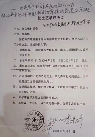 镇里把属于我村的29亩养鱼池的补偿款,转给出岸镇政府涉嫌严重违法。此地块不在征地批文170.8亩范围之内,归我村所有。证据是季某修与我村委会的承包合同,市工商局给季某修发的营业执照和镇政府对养鱼池的估价报告。
